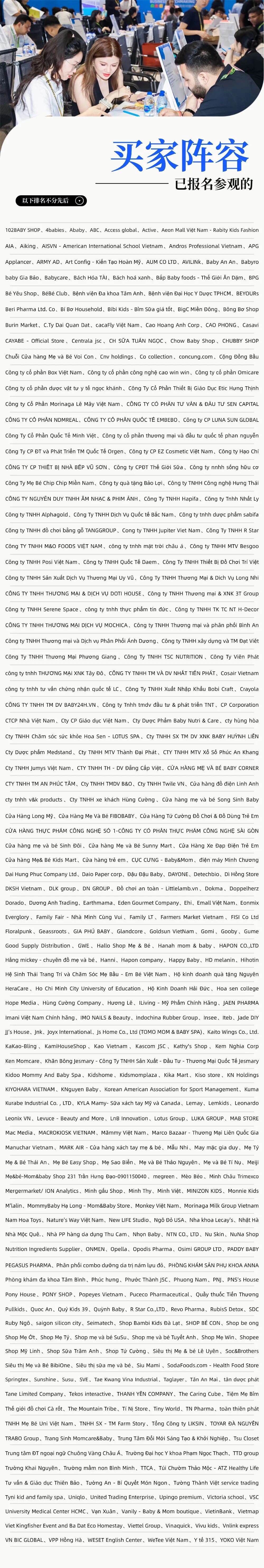 实力零售商、优质代理商…正纷至沓来。在这里,您遇到的每一位买家,都可能是打开越南母婴市场的钥匙。