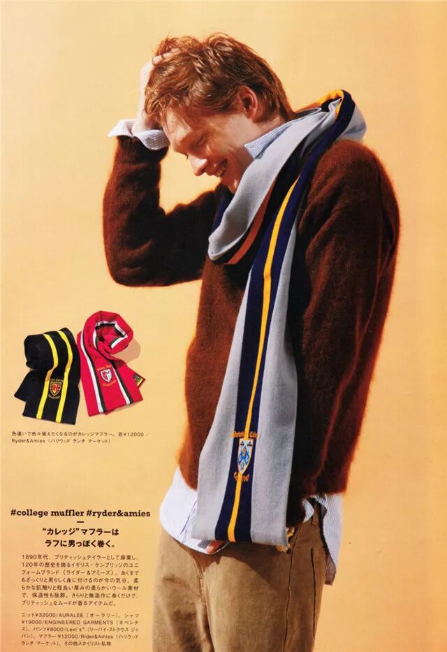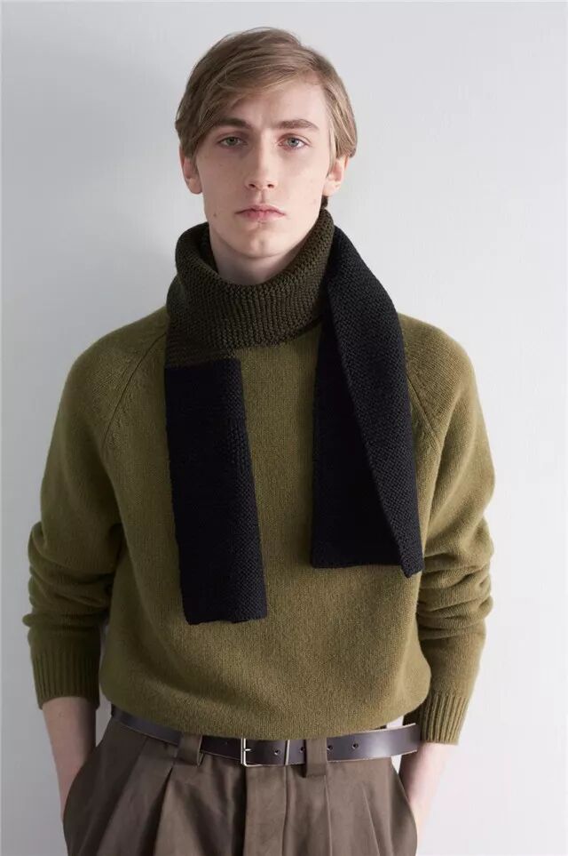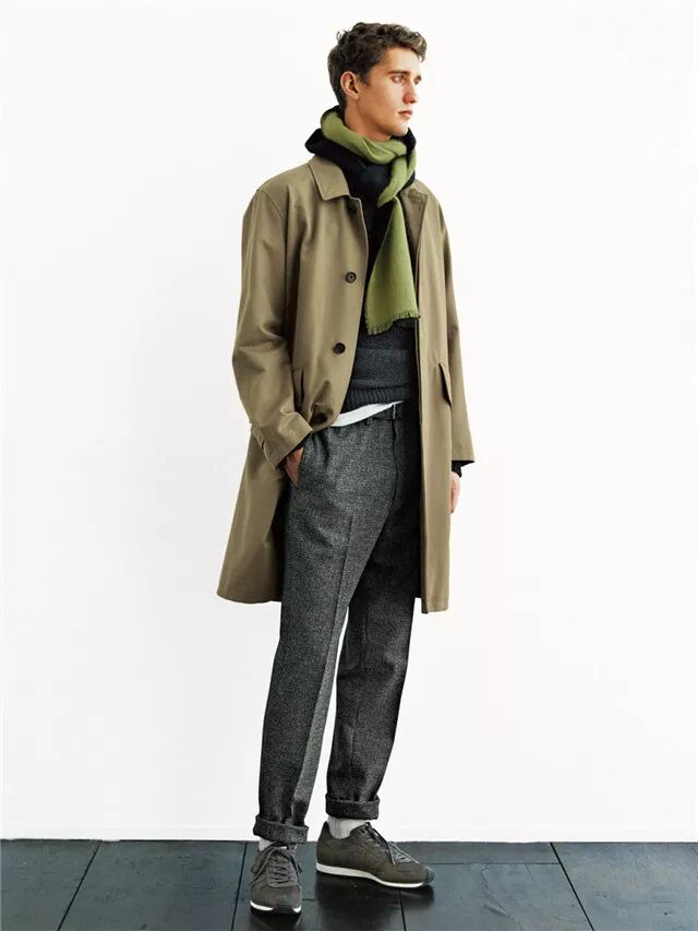 简洁利落的纯色越简洁利落的款式,越好凹造型,而且不易过时,也最好驾驭,所以是是很多男生的最爱。只要在搭配时候注意围巾与上衣的颜色搭配是否协调。